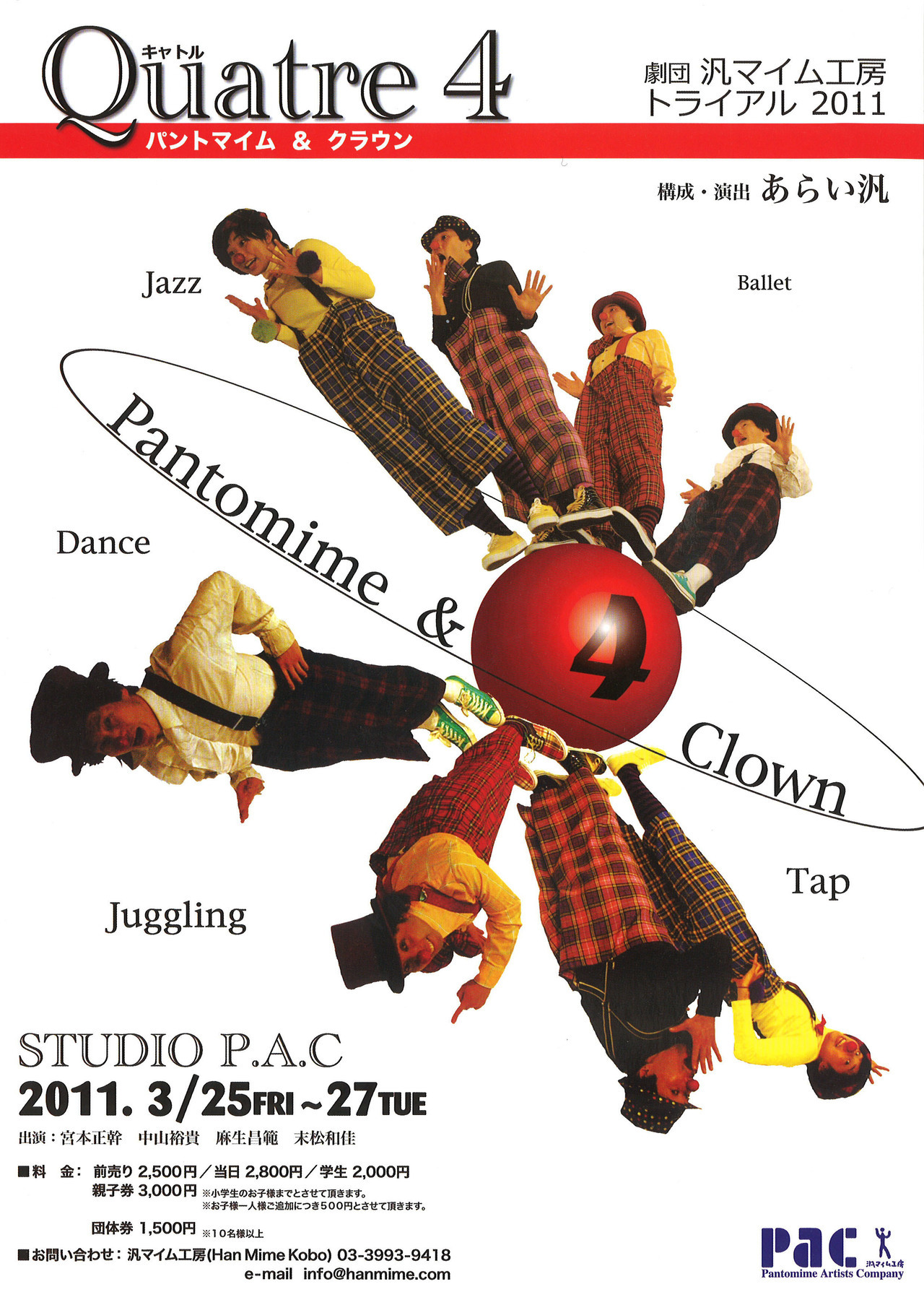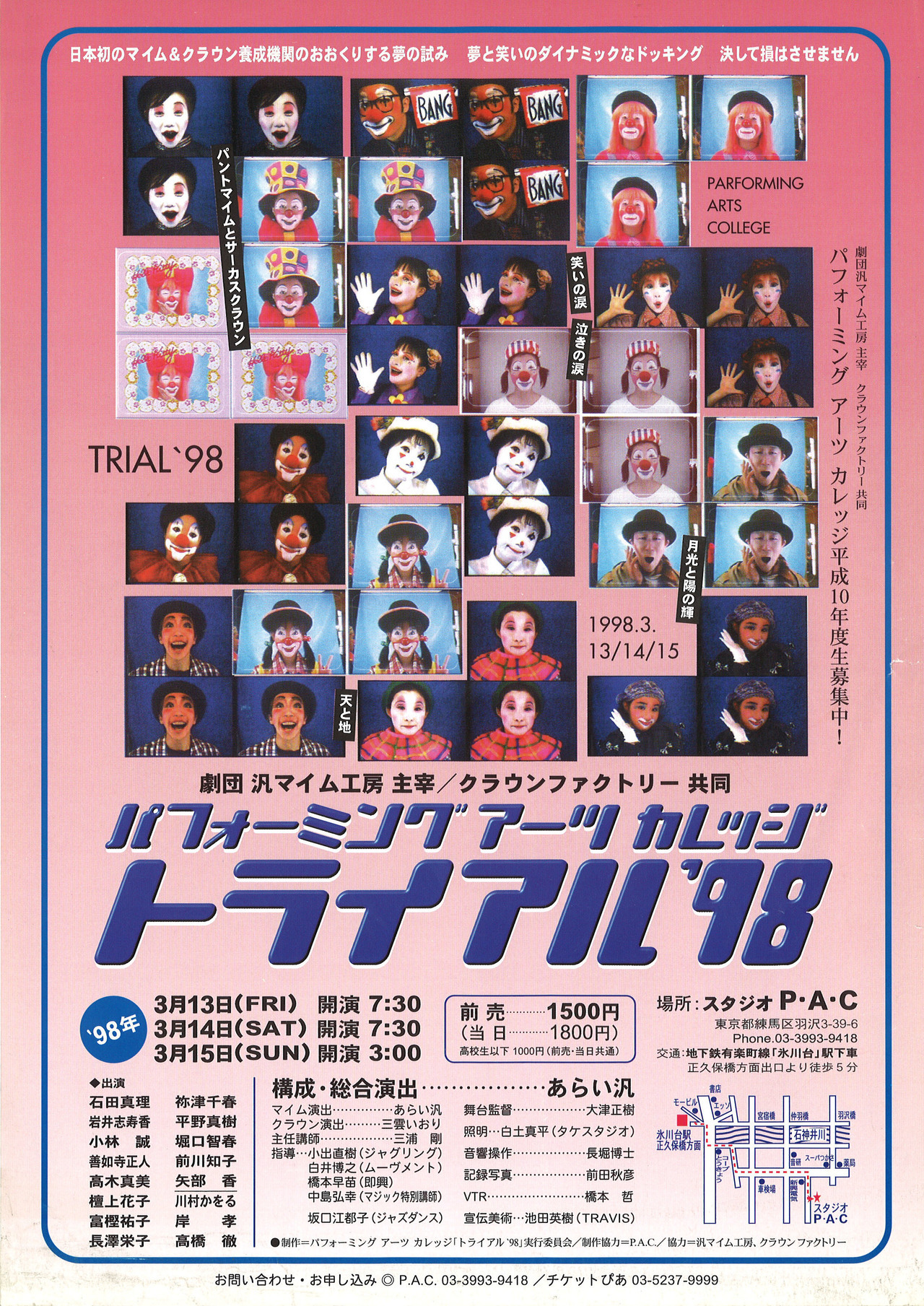 1979年、あらい汎によって設立されたパントマイム、クラウン芸の企画制作専門劇団『劇団汎マイム工房』、及び企画制作会社『パントマイム・アーティスト・カンパニー』パフォーマー養成所『パフォーミング・アーツ・カレッジ』のホームページです。