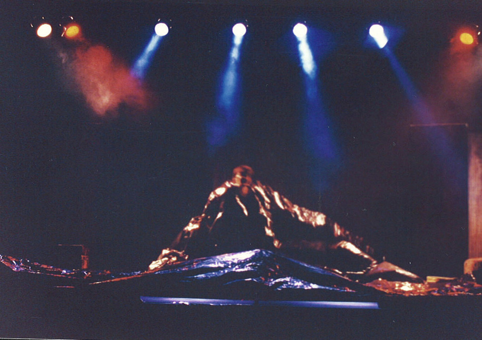 初演スタジオPAC、その後、渋谷ジャンジャン、沖縄ジャンジャン、ドンキダンス4人.jpg等2~3回の公演。池袋演劇フェスティバル参加の後、イタリアフェスティバル、フランスボルドーのシグマフェスティバルに参加。脚本はあらい汎著「パントマイムの心と身体」に掲載。